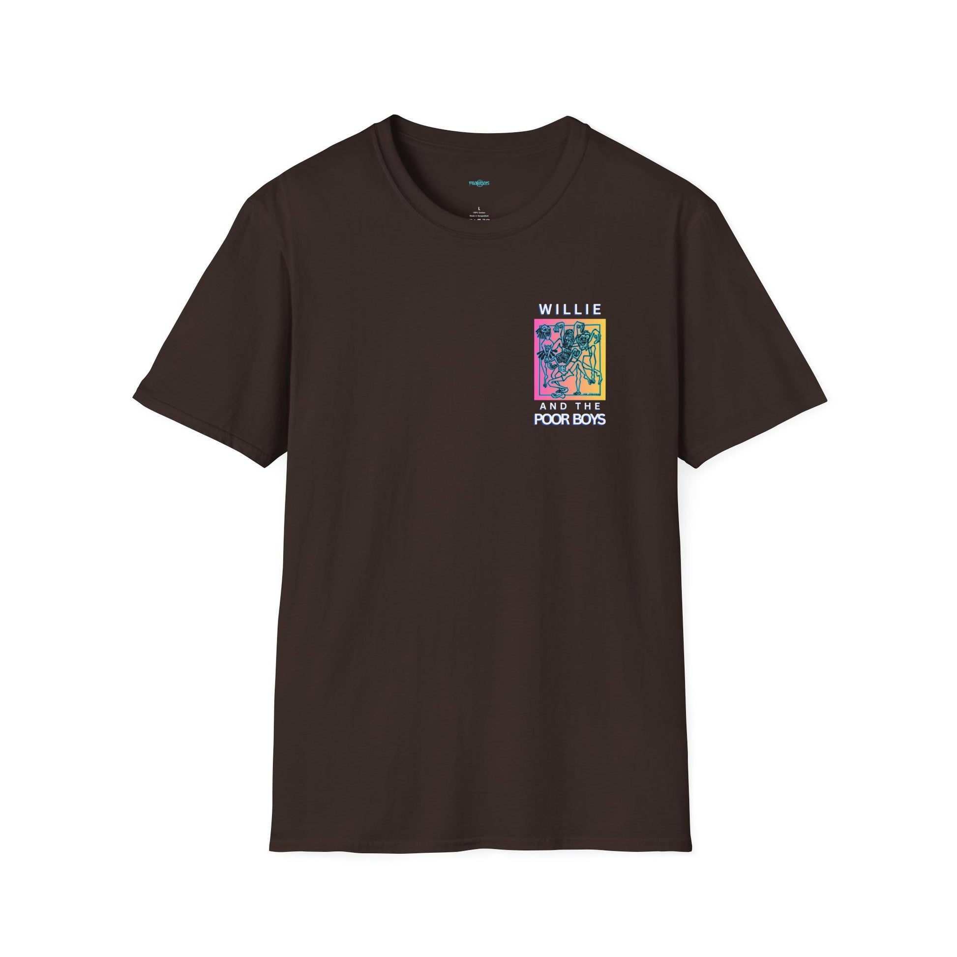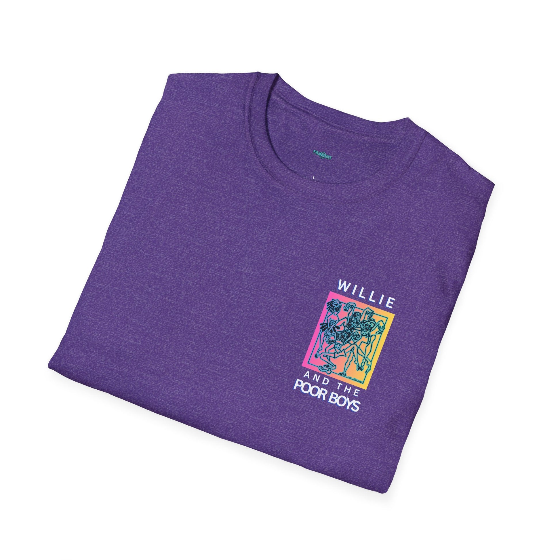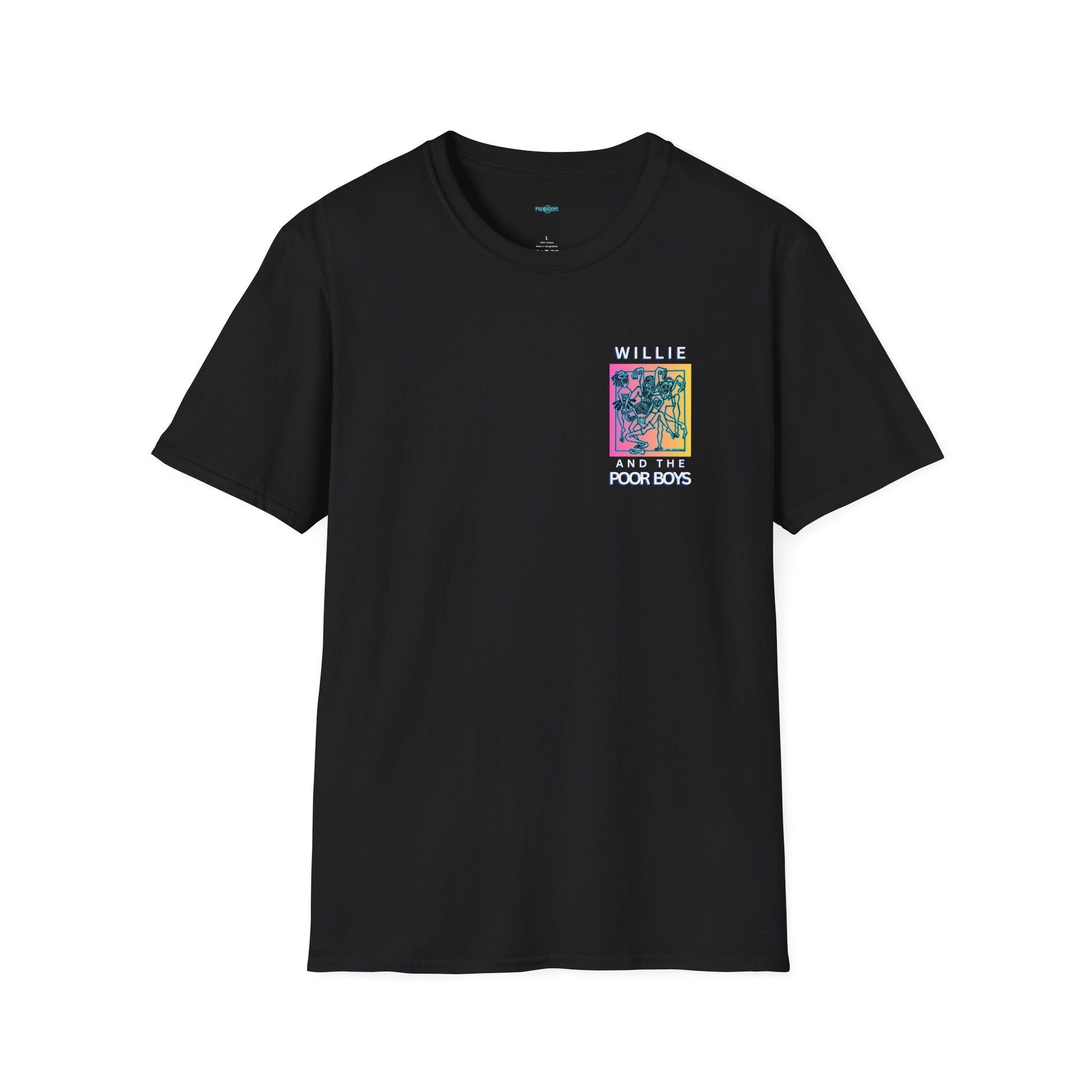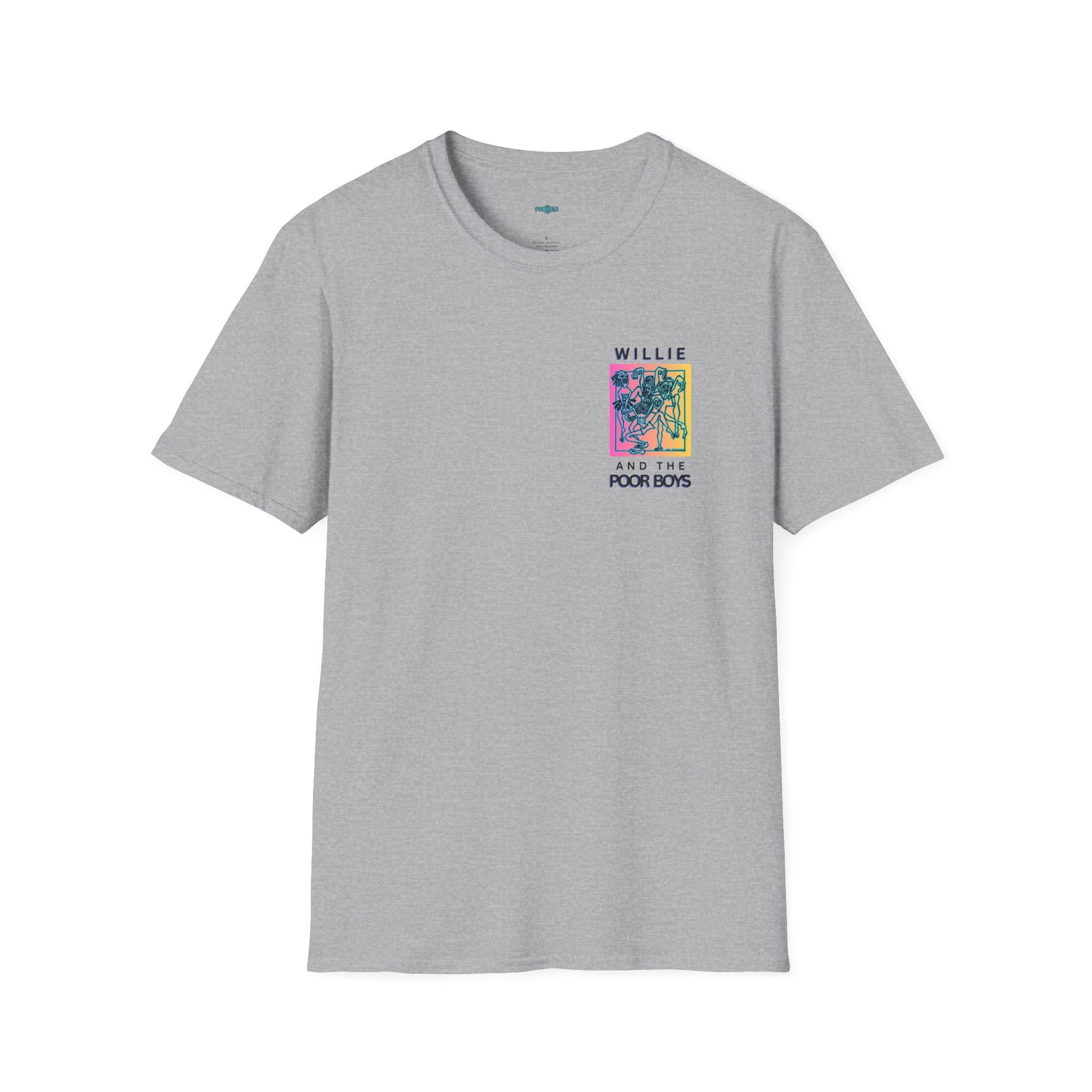 This unisex softstyle tee blends classic comfort with a bold design created exclusively for the 2025 reunion. The front features the original Willie & The Poor Boys logo by Gary Knize, while the back showcases his new, hand-drawn reunion poster design—celebrating the band’s return to the stage in Stroudsburg, PA.