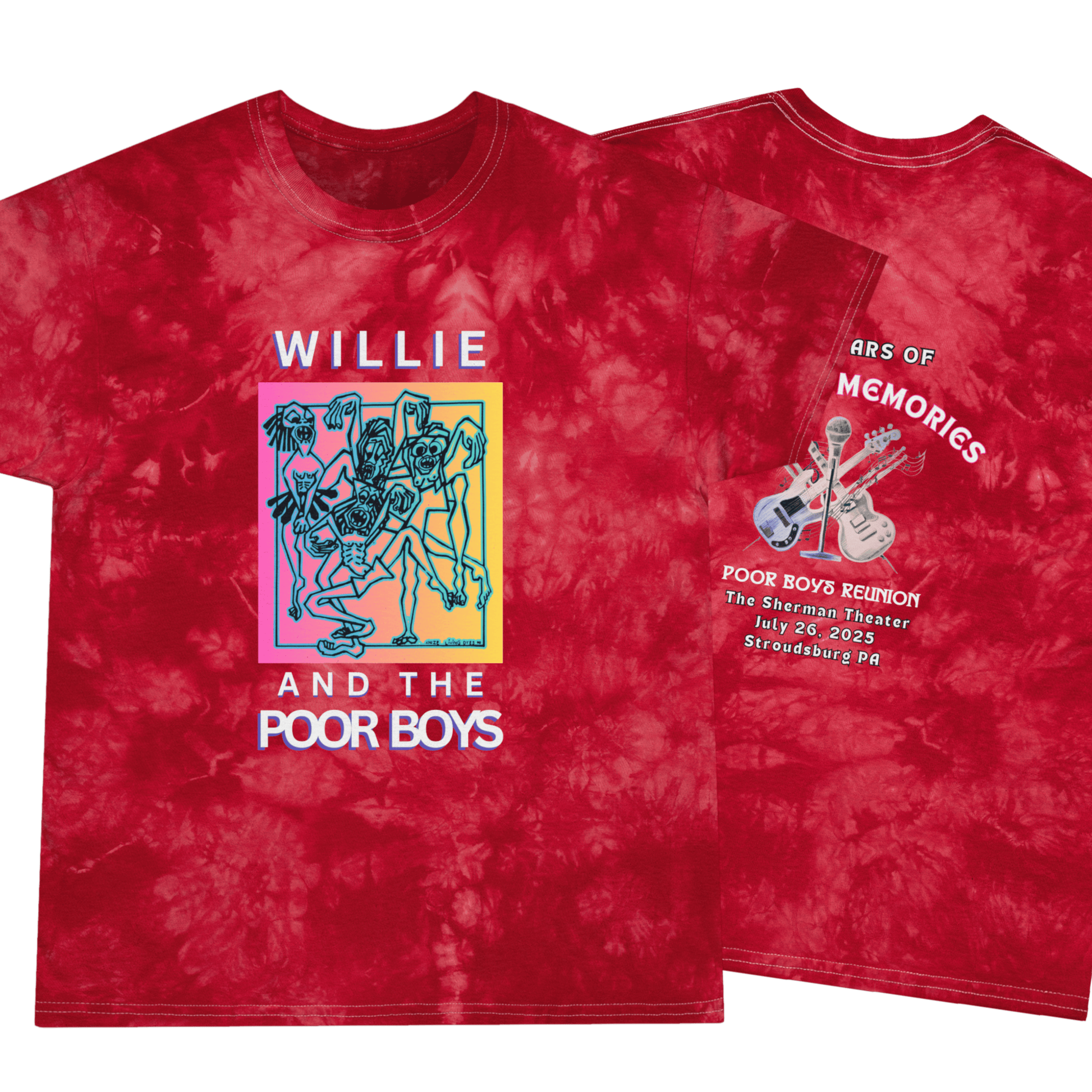 This crystal tie-dye tee blends the past and present with the original front logo and a new back design centered around Music & Memories. Featuring guitars, bass, drumsticks, and swirling musical notes, the artwork highlights the July 26, 2025 show at the Sherman Theater. A meaningful keepsake for anyone who’s been part of the ride.