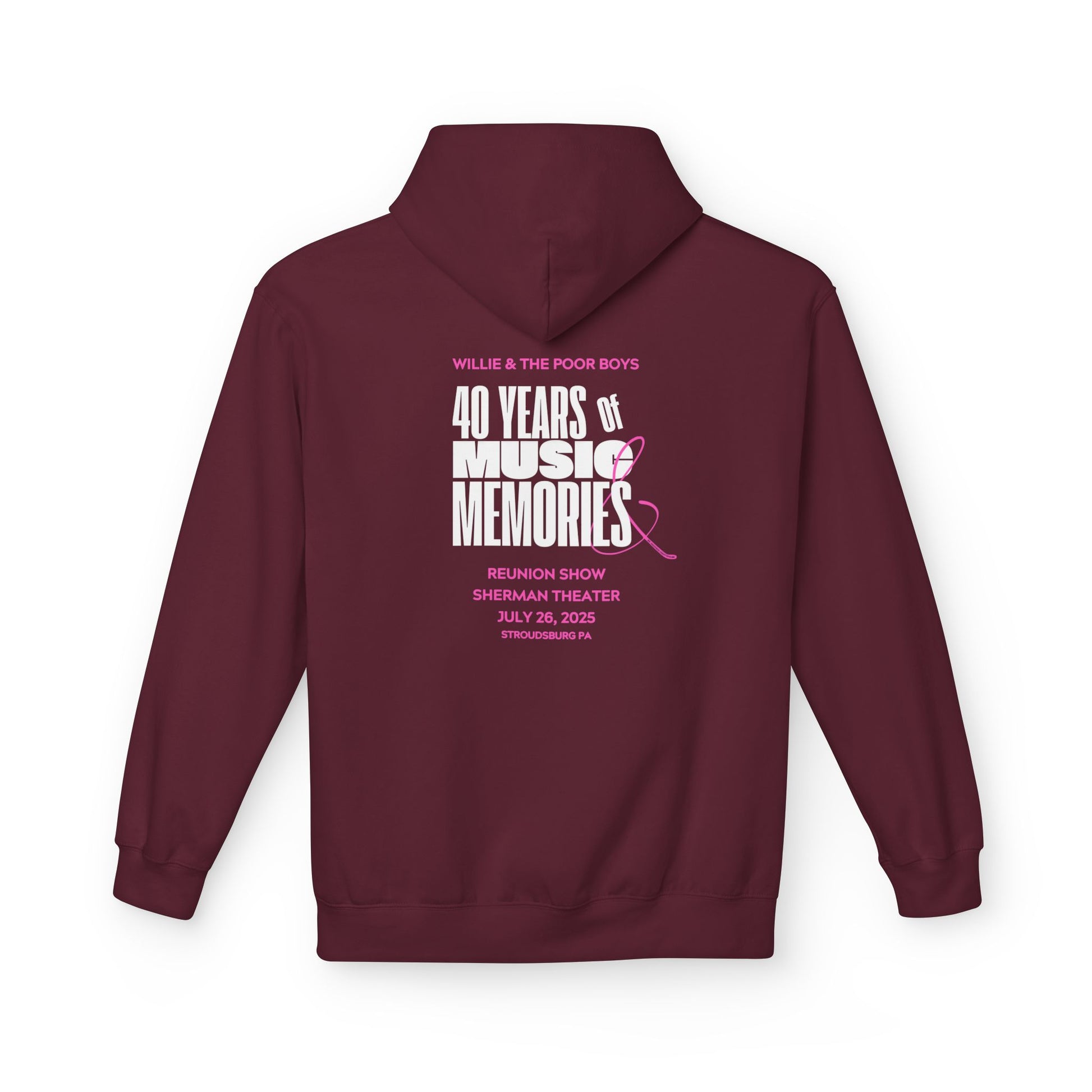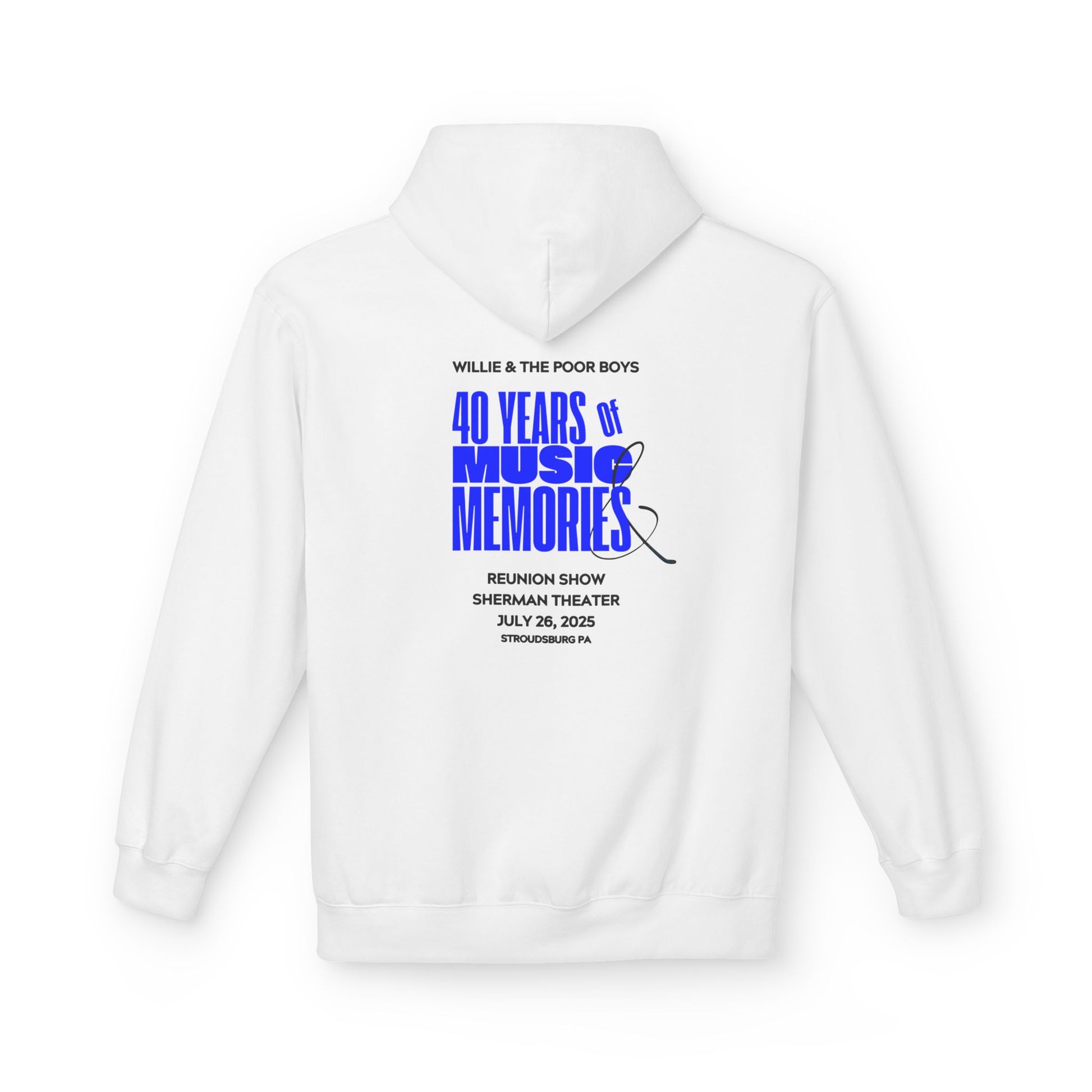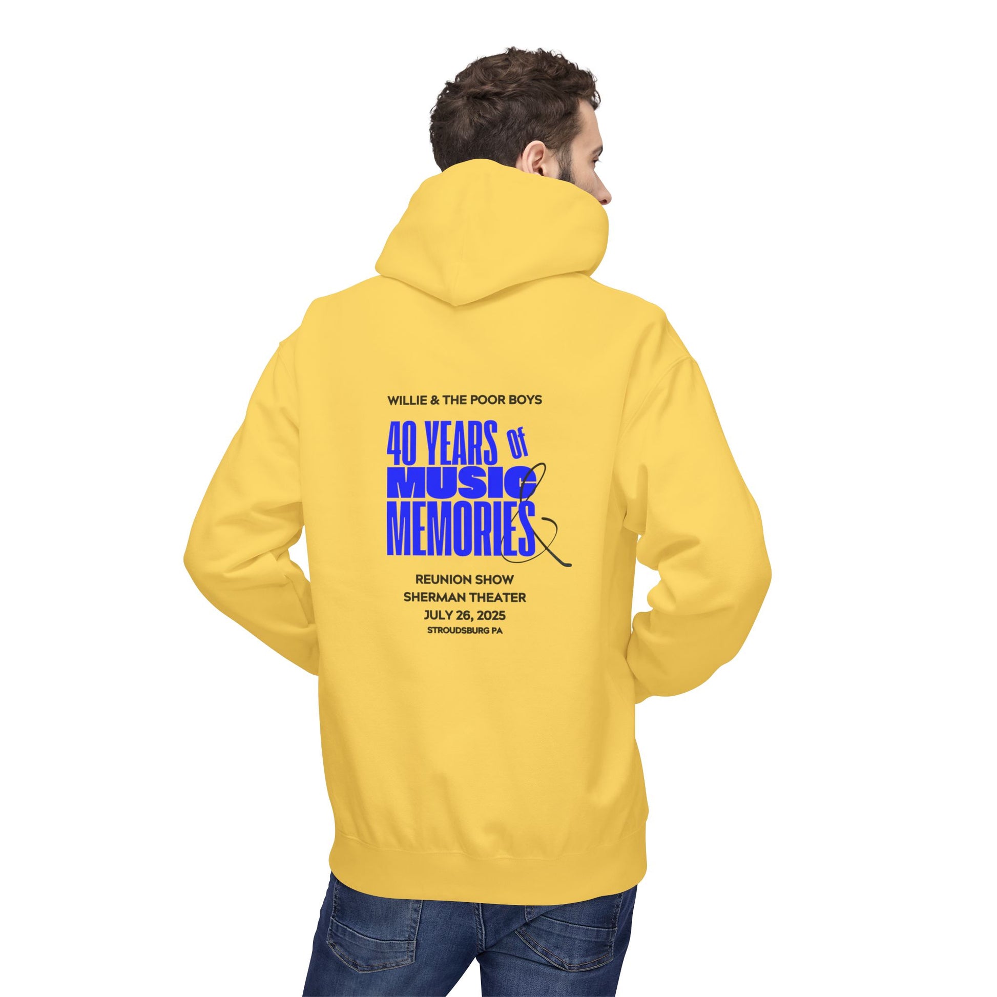 Unisex Reunion Hoodie – Poor Boys Logo Front with 40 Years of Music & Memories Back (Various Colors Available)