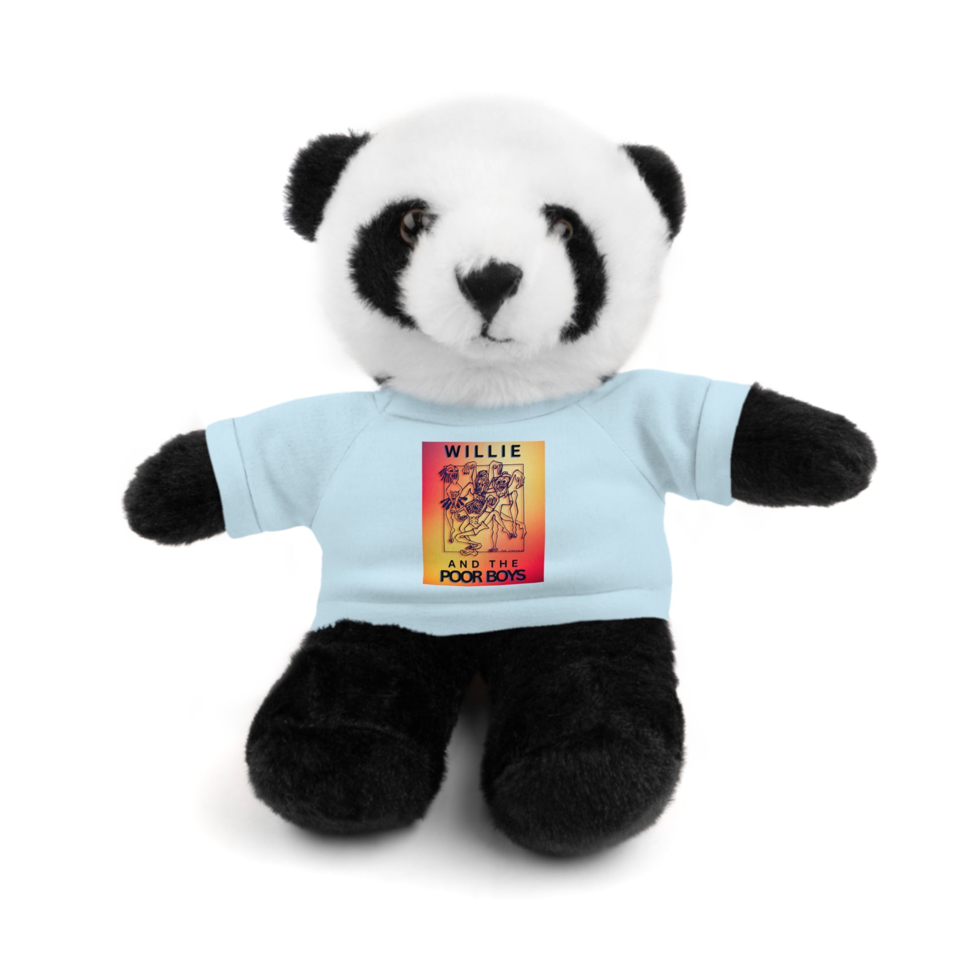 Each 8" plush - available as a bear, bunny, lion, panda, lamb, or jaguar-comes wearing a mini T-shirt featuring the classic Willie & The Poor Boys artwork.